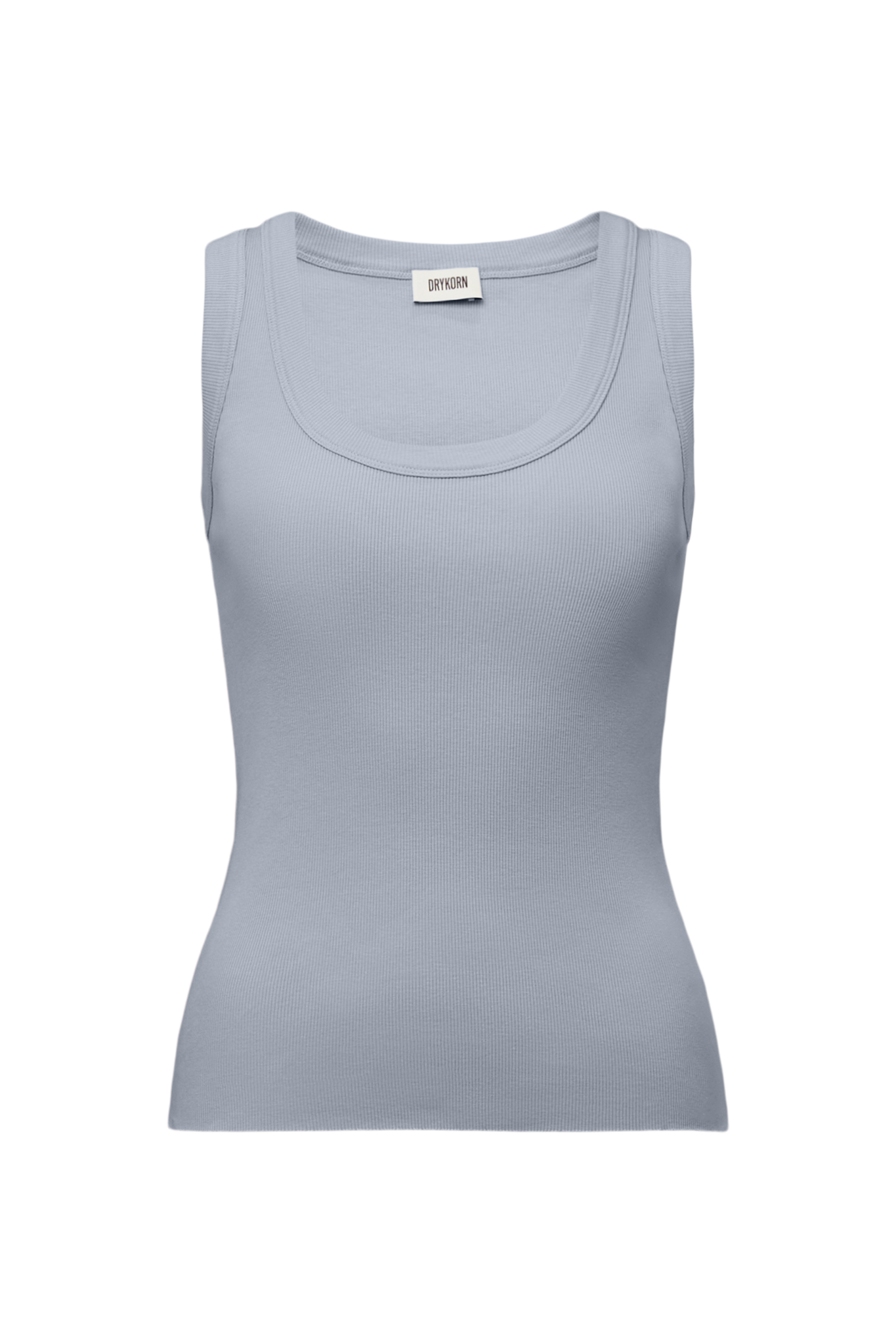 De Tavira tank top van DRYKORN in blauw is een verfijnde essential met een rustige, moderne uitstraling. Het mouwloze ontwerp heeft een vrouwelijke ronde hals en een aansluitend silhouet dat het lichaam mooi volgt. De fijne ribstructuur benadrukt de slanke pasvorm en geeft de top een subtiele textuur. De onafgewerkte zoom voegt een eigentijds detail toe. De 100% katoenen kwaliteit voelt zacht aan en heeft een matte afwerking. Een veelzijdig basisstuk dat zowel solo als onder een blazer of vest gedragen kan worden.