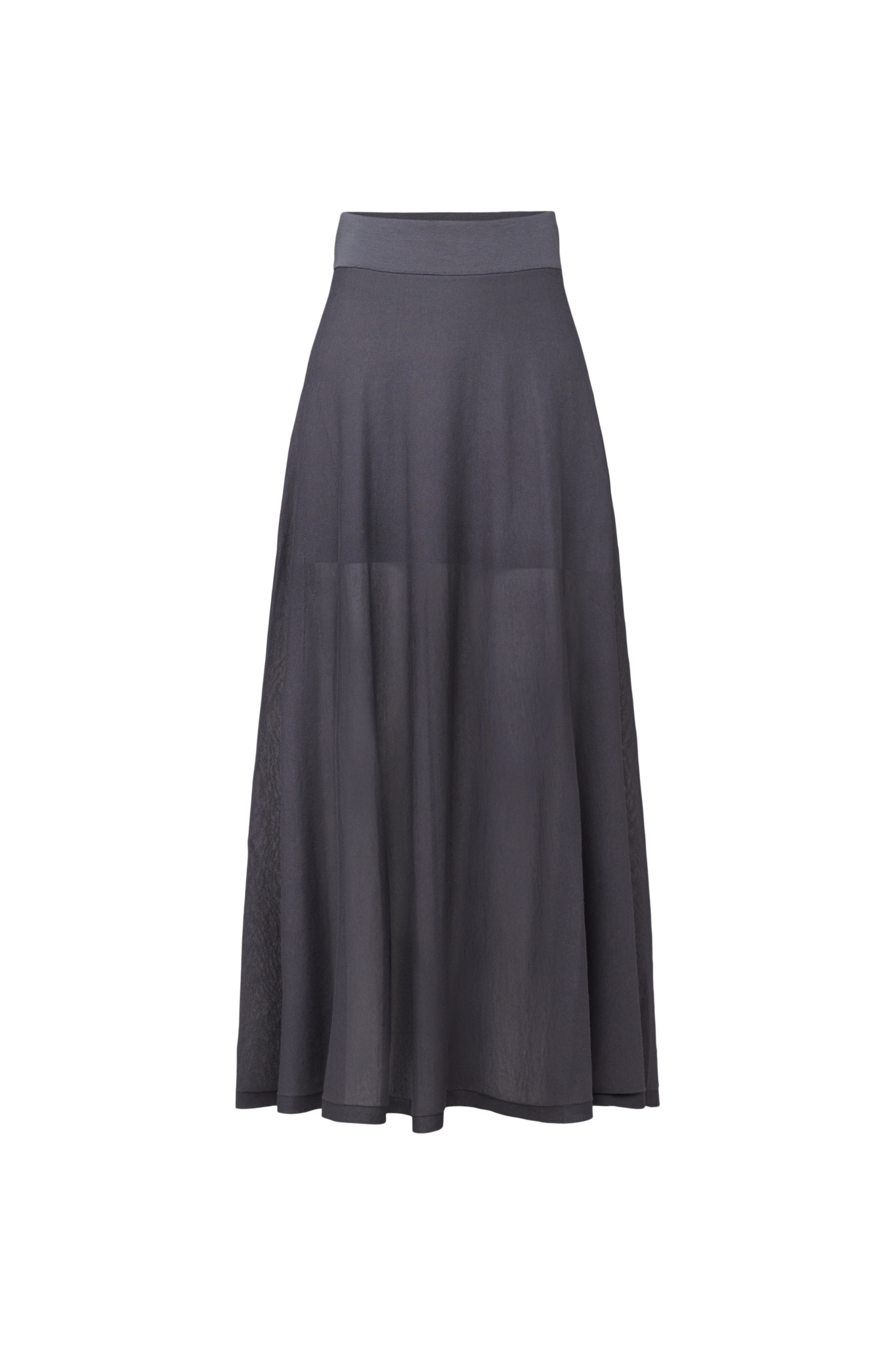 De rok heeft een high waist en een klassiek A-lijn silhouet dat soepel langs het lichaam valt. Het fijne breisel van katoenmix zorgt voor een zachte valling en een comfortabel draaggevoel. Dankzij de lichte structuur oogt de rok verfijnd en modern. Het model is uitgevoerd zonder voering en valt soepel als een sliprok, waardoor het silhouet natuurlijk en vrouwelijk blijft.