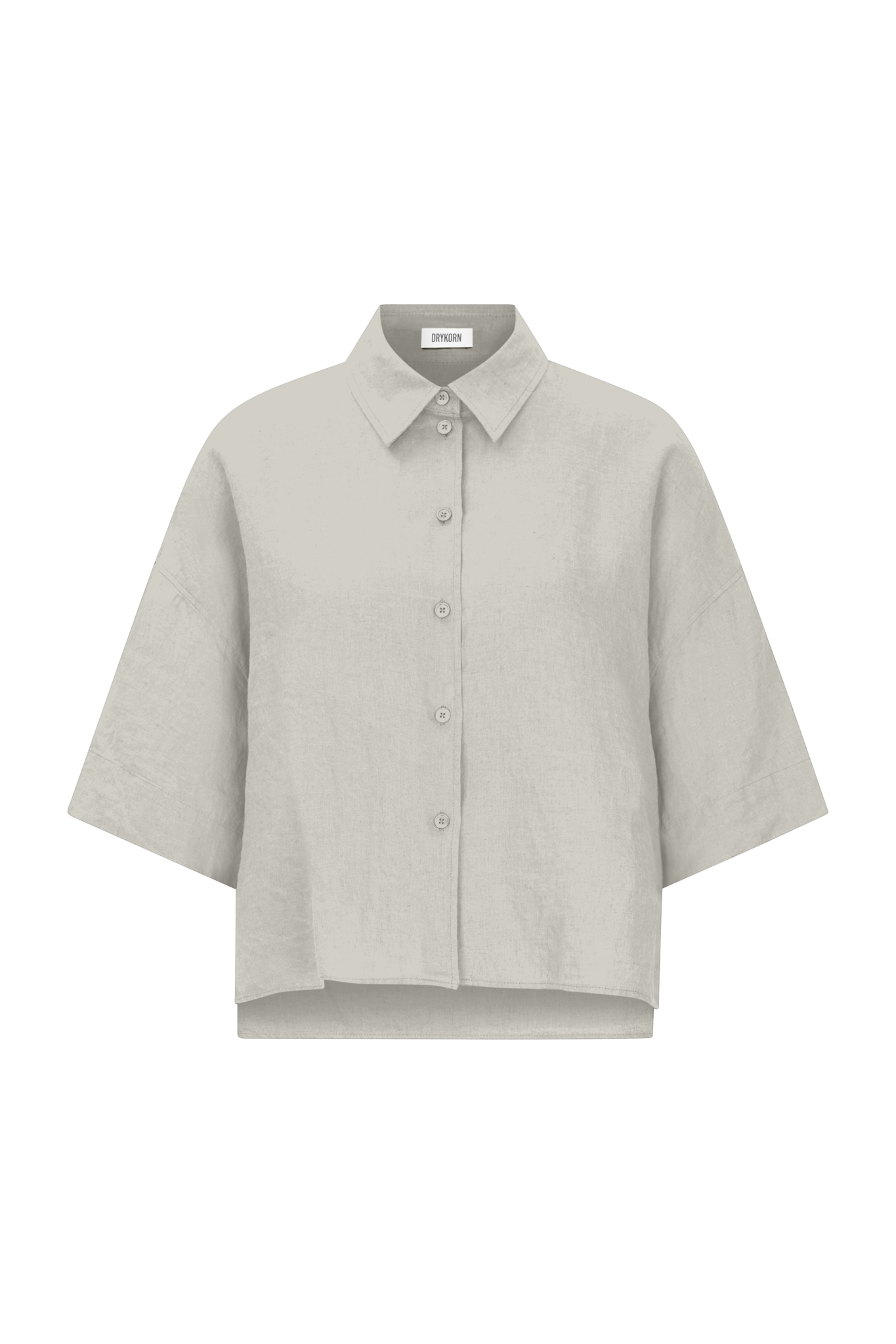 De blouse heeft een oversized fit en een recht H-shape silhouet dat losjes om het lichaam valt. De 3/4-mouwen en de klassieke overhemdkraag zorgen voor een tijdloze balans tussen casual en gekleed. De knoopsluiting en subtiele zijsplitten in de zijnaden geven het ontwerp een verfijnde afwerking. De 100% linnen stof voelt licht en luchtig aan en biedt dankzij de natuurlijke eigenschappen een aangenaam draagcomfort tijdens warmere dagen.