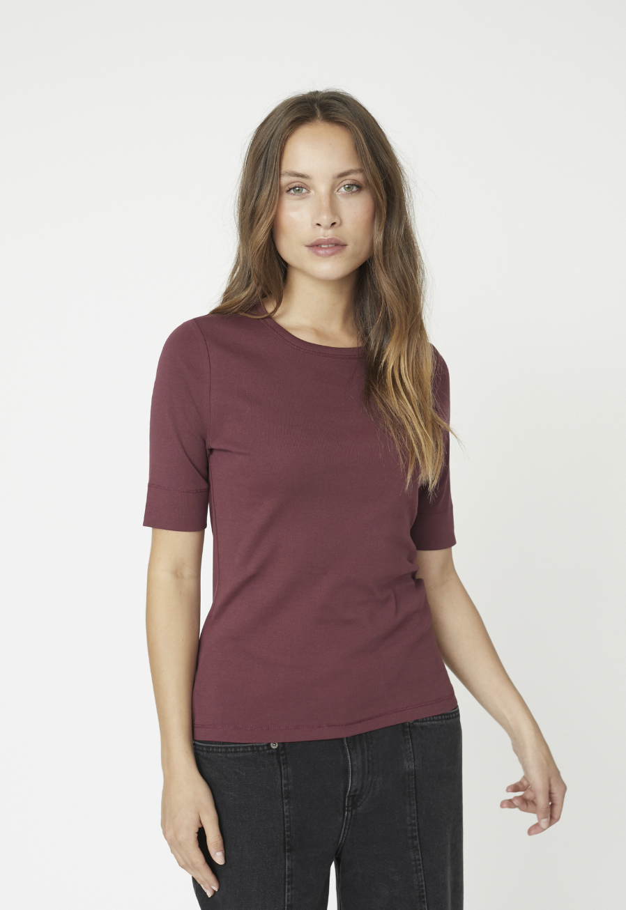 Stylenummer: 33016Materiaal: 100% Organic cottonKleur: BordeauxDetails: Uni, met stretchFit: Valt op maatModel: Het model is 1.74m en draagt maat S/36/27