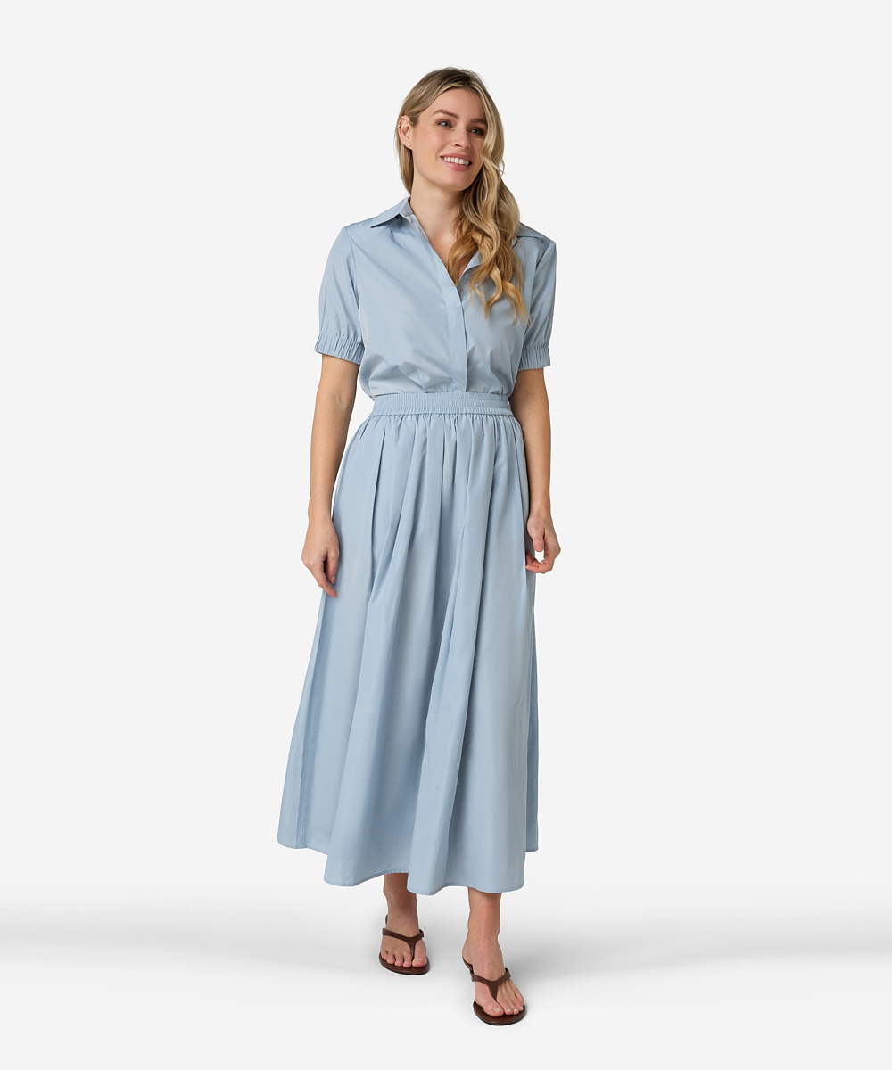 De Sana skirt van Ibana in de kleur Violetta Blue heeft een wijde fit die soepel en elegant valt. De elastische tailleband zorgt voor extra draagcomfort, terwijl de non-stretch stof de rok een verzorgde en tijdloze uitstraling geeft.