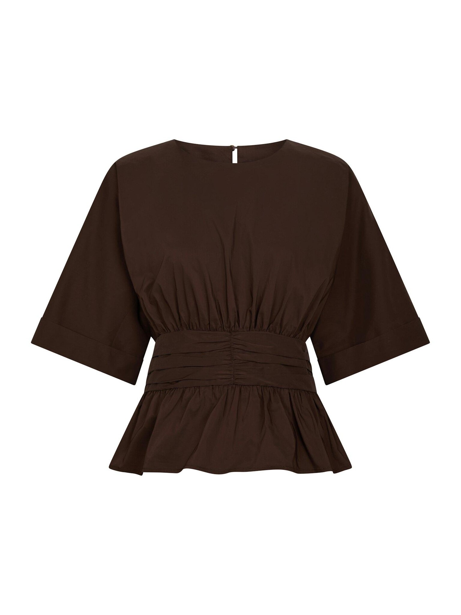 Details: Uni, poplin, wijdvallende korte mouwen, getailleerd lijf