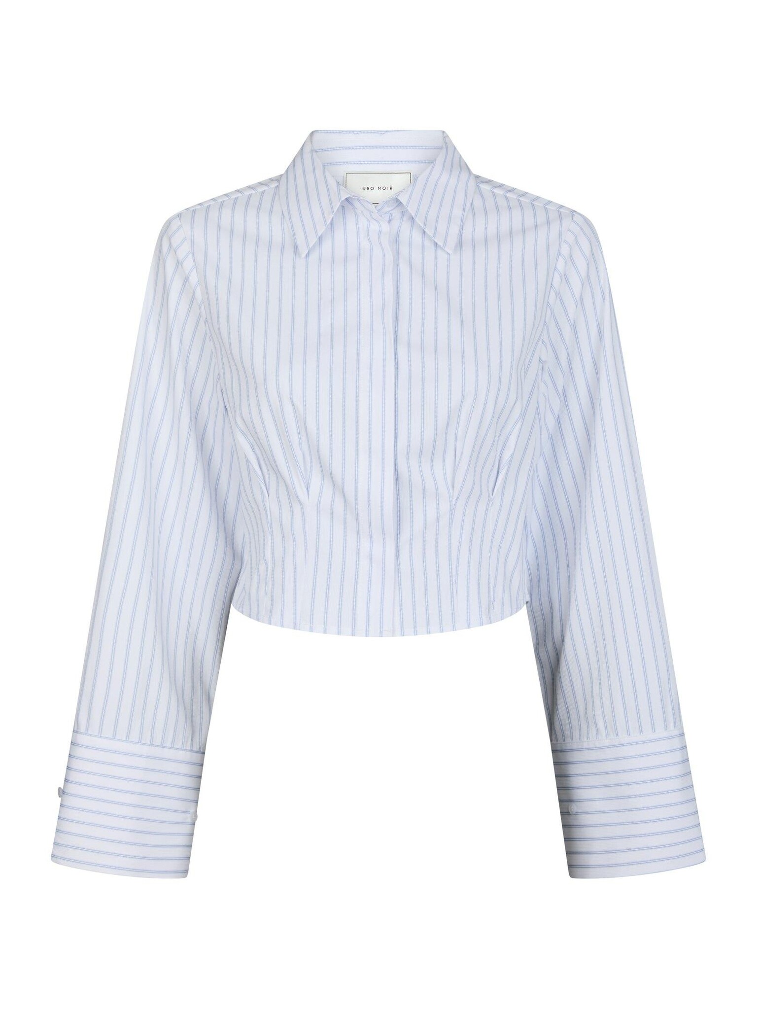 De Frost Slim Stripe Shirt van Neo Noir is een strak gesneden, cropped overhemd in een verfijnd witte streep. De luxe stofmix met polyester, bamboevezel en elastaan zorgt voor een zacht, licht stretchy draaggevoel. De wijde mouwen met nette manchetten geven het geheel een chique en eigentijdse uitstraling. Met een pasvorm die aansluit aan de taille en afloopt tot net boven de heup, vormt dit item een modern statement dat eenvoudig te combineren is met high-waist broeken of rokken.