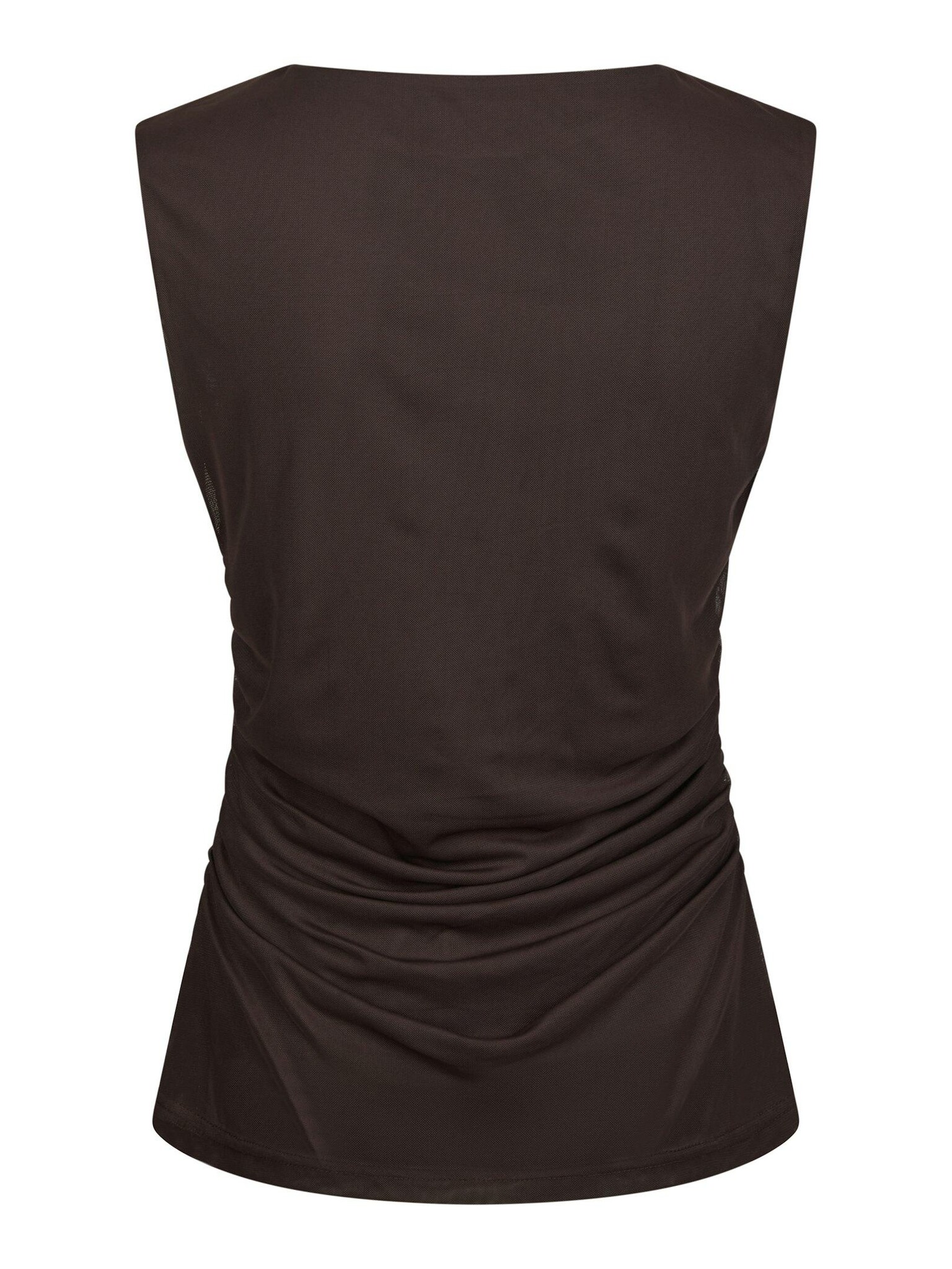 De Liblana Mesh Top van Neo Noir is een fraaie, vrouwelijke top in een donkerbruine meshkwaliteit met een subtiele glans. De drapering aan de voorzijde vormt een vloeiende, flatterende lijn, terwijl smockdetails op de schouders en zijkanten zorgen voor een fijne pasvorm, extra comfort én een speelse uitstraling. Gemaakt van polyester met een vleug elastan, voelt deze mesh top licht en soepel aan op de huid – perfect voor zowel day- als evening looks.